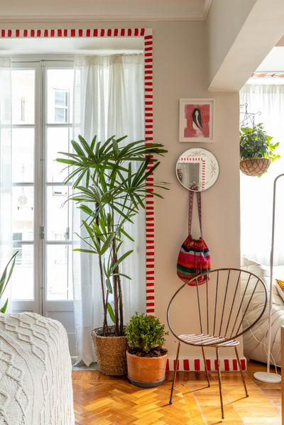O Incerti explica que a relação entre elas é o que mais chamou sua atenção e identificou que esse seria o tema central de seu trabalho. O tom lúdico permeia todo o quarto, que recebe muita luz natural e está cheio de memórias afetivas e de viagens, plantas, móveis garimpados e obras de outros artistas como Rita Wainer, Pedro Luiz e Getulio Amado. Por ser apaixonada por animais e viver rodeada pelos bichos, o arranhador de gatos também ganhou uma releitura criativa e virou uma verdadeira obra de arte em forma de coqueiro, feito pelo aderecista Guilherme Xav